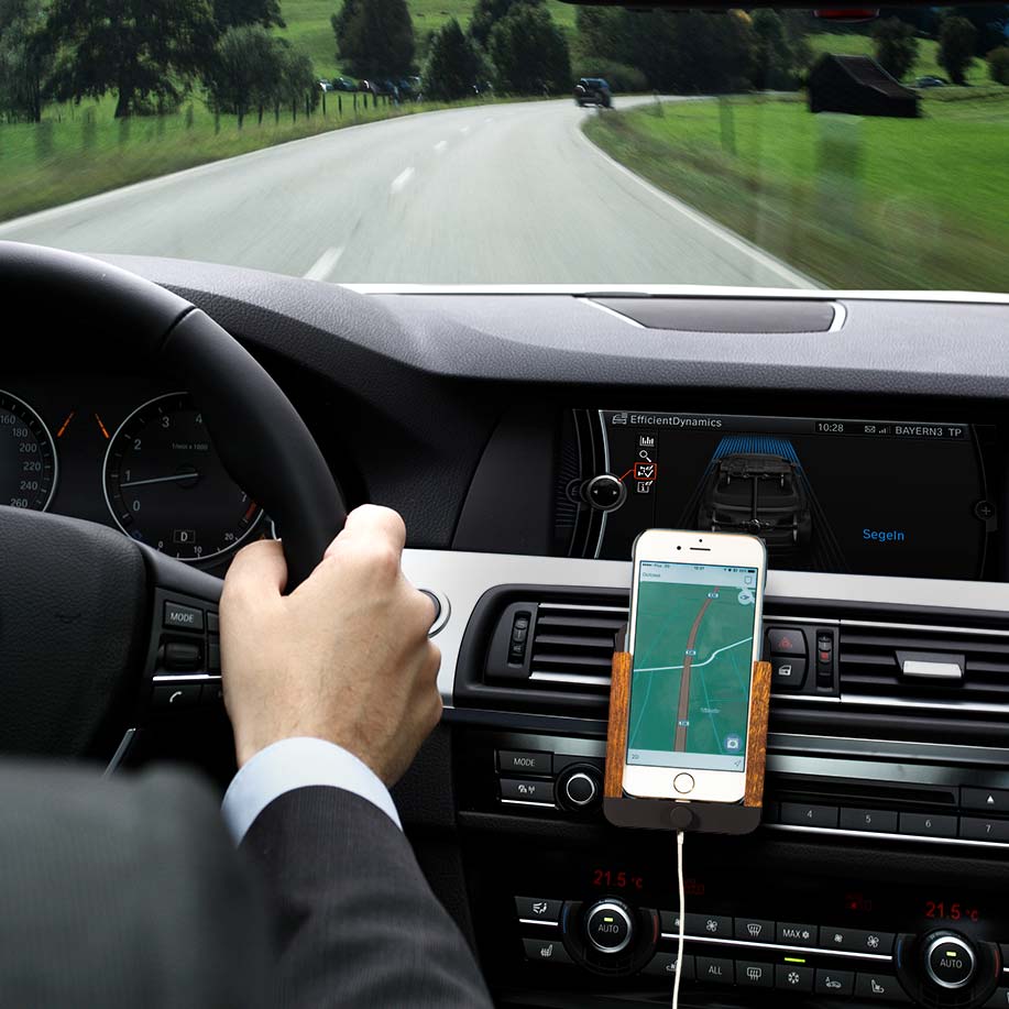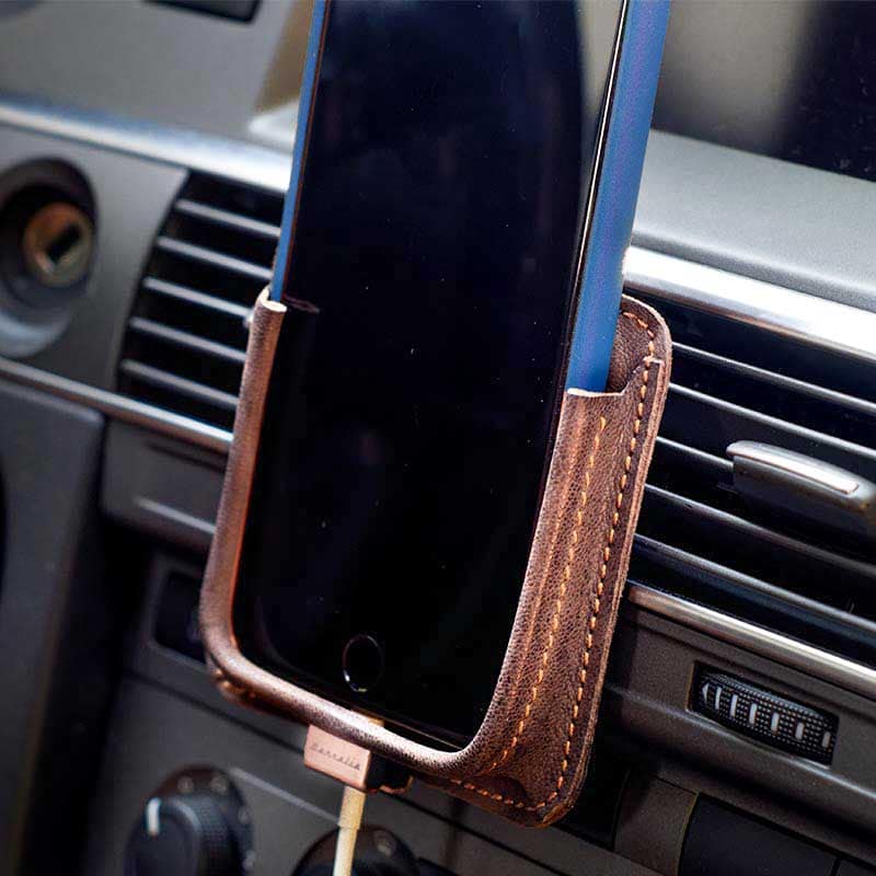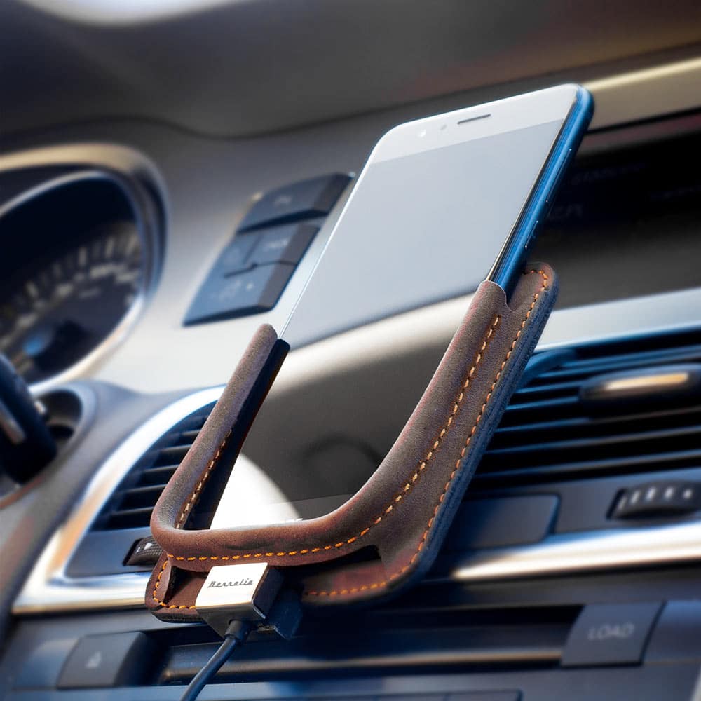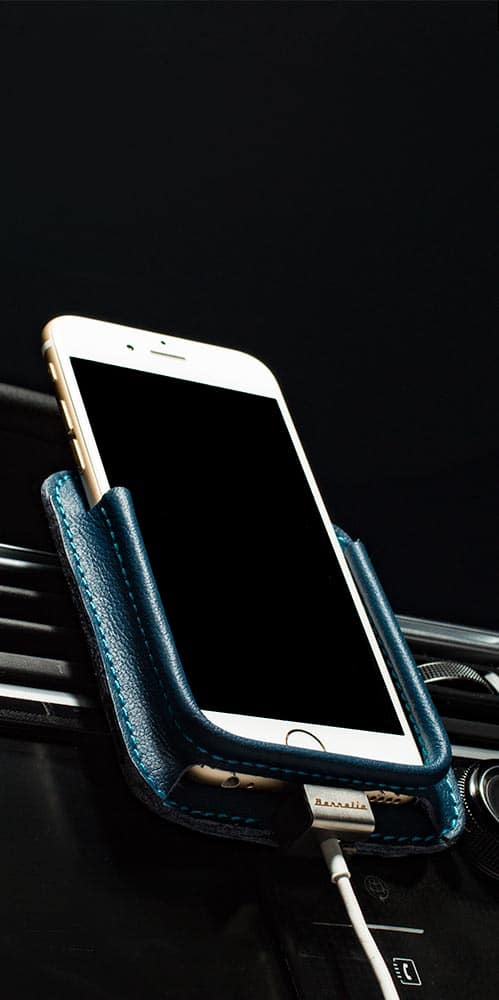 Berrolia No. 3 is a handmade, premium car mount. Made of premium-grade materials, it fits the beautiful interior of your car. Just insert your phone with a quick one-hand move. You are ready to go and your phone starts charging.